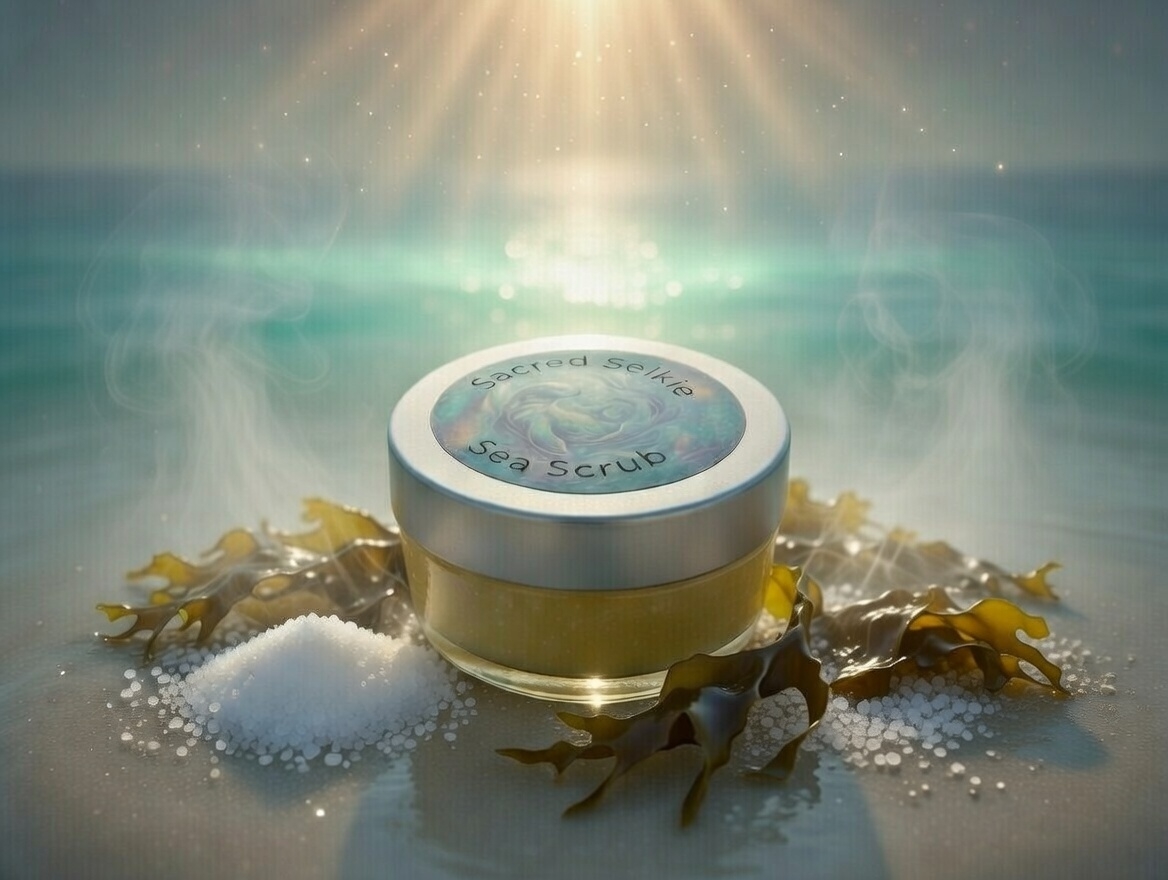 Handmade with natural sea salt for gentle exfoliation and kelp for mineral-rich nourishment, this scrub draws out impurities while grounding you in the sea’s ancient rhythm. The fresh, salty ocean aroma transports you to misty shores, awakening your inner Selkie spirit of transformation and freedom.